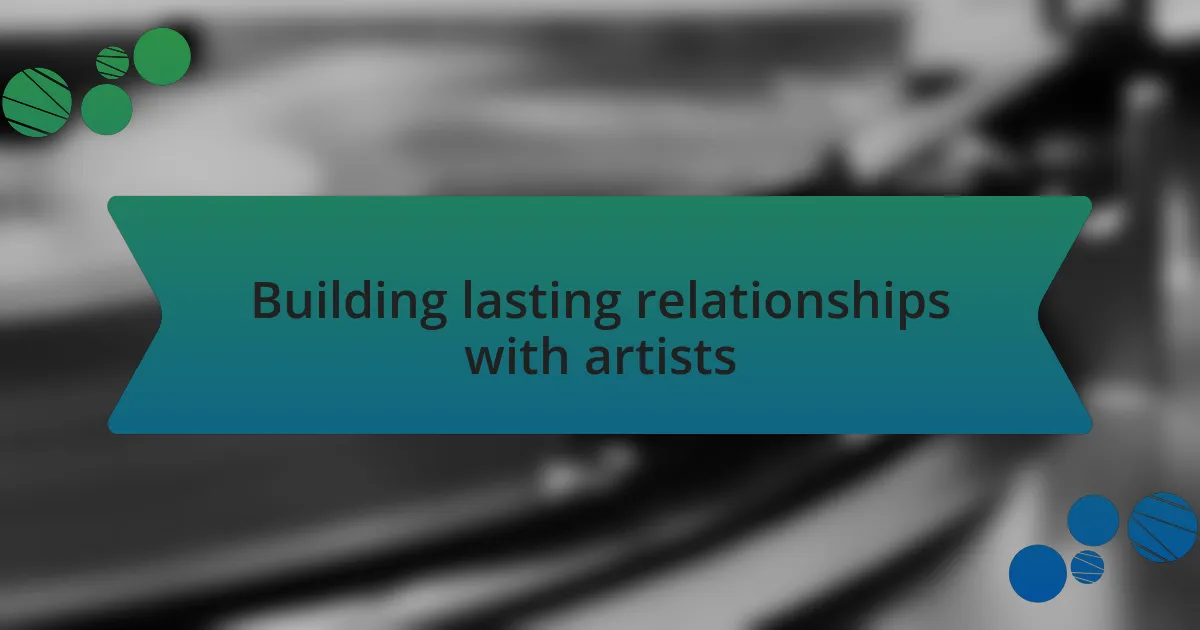 Building lasting relationships with artists often begins with shared experiences. I remember during a long studio session, I brought in a couple of musicians to brainstorm their upcoming projects. The atmosphere buzzed with anticipation, and as ideas flowed, I could see them connect on a deeper level. Isn’t it fascinating how a simple creative space can turn acquaintances into collaborators?