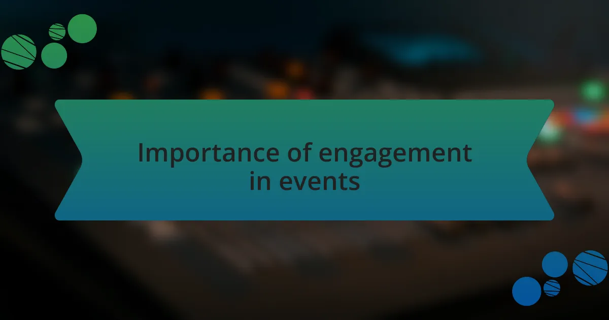 Engagement in events plays a pivotal role in creating memorable experiences. I recall one particular night at an underground rave where it felt like the music transcended the speakers and connected everyone present. This sense of shared energy not only enhanced the performance but also fostered a deeper relationship among attendees, reminding me that our collective enthusiasm can amplify the atmosphere exponentially.